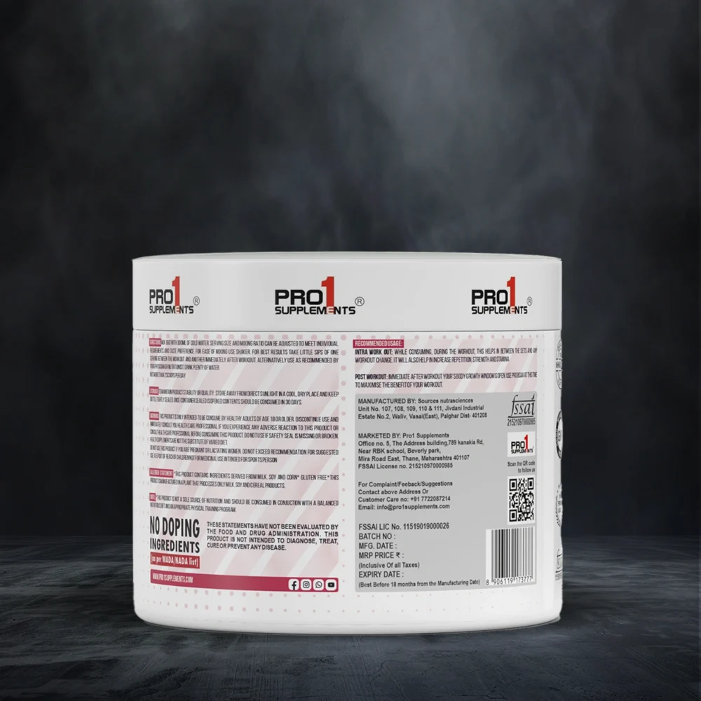 Fuel your workouts with Pro1 Supplements Pro BCAA - Strawberry Flavour, a premium branched-chain amino acid supplement designed to support muscle recovery, endurance, and performance. Formulated with L-Leucine, L-Isoleucine, and L-Valine in an effective ratio, this zero-sugar formula helps reduce muscle fatigue, improve workout stamina, and promote faster recovery after intense training sessions.