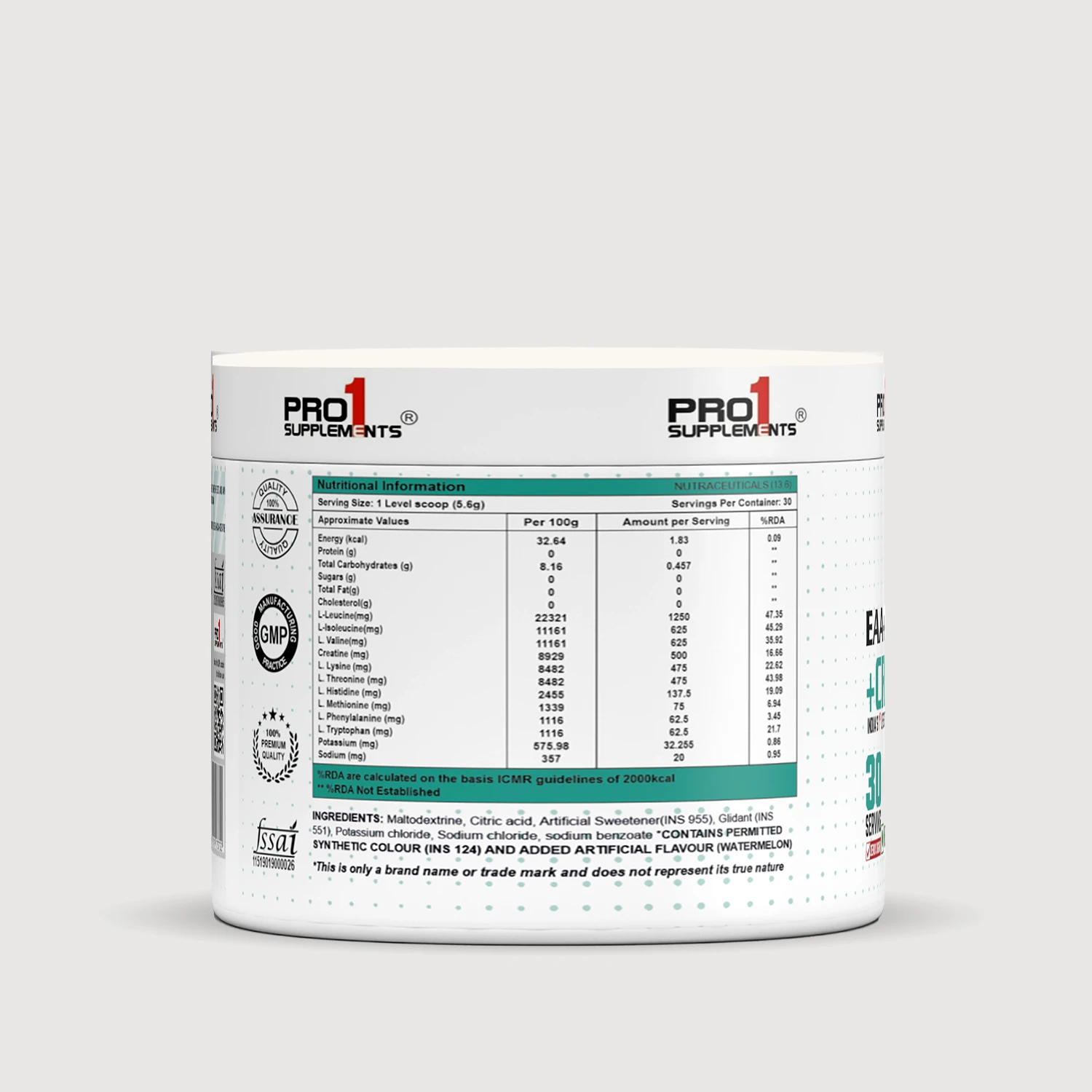 Enhance your training performance with Pro1 Supplements EAA + BCAA + Creatine – Watermelon Flavour, a scientifically designed amino acid formula that supports muscle recovery, endurance, and strength during intense workouts.